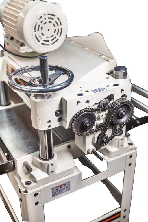 Jet JWP-16 OS HH – новая модификация хорошо известного JWP-16OS, но ориентирована сугубо на профессионалов. Внешне она мало отличается, но имеет ряд существенных технических изменений. Самое главное из них – строгальный вал helical. На него установлено 90 твердосплавных режущих сегментов, причем у каждого из них четыре режущих грани, что кратно продлевает ресурс. Ножи расположены в несколько рядов по спирали, благодаря чему обеспечен последовательный, а не всем рядом заход в древесину, к тому же не прямо, а под углом. Это снижает вибрации, уровень шума и улучшает качество строгания: существенно чище срезаются сучки, меньше поднятие ворса. Еще одно важное отличие JWP-16OS HH - более мощный трехфазный двигатель.