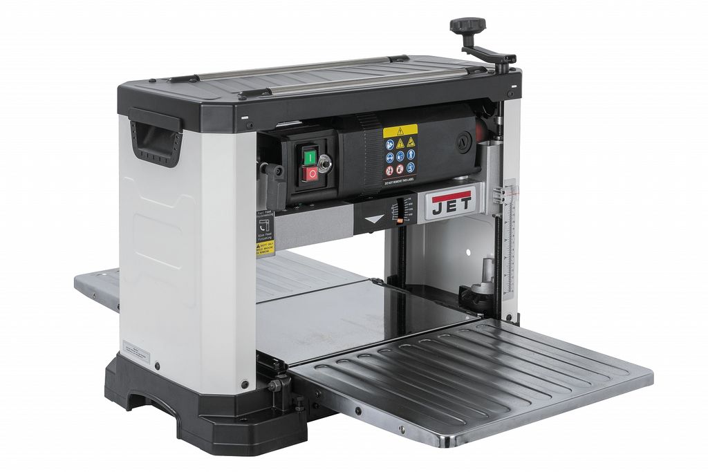 JWP-13HH современный рейсмусовый станок компактного класса с сегментированным ножевым валом шириной 330 мм. Строгальный барабан оборудован не прямыми длинными лезвиями, а небольшими (14 мм шириной) режущими сегментами, которые установлены по несколько штук в ряд. Эти ряды (всего их 6) входят в заготовку последовательно, что снижает вибрации, шум и ударные нагрузки. Одновременно повышается качество строгания – каждый нож удаляет не цельный «пласт» по всей ширине заготовки, а узкую (14 мм) полосу, что намного уменьшает вероятность вырыва свилеватых участков древесины. При этом процессе образуется мелкая стружка, удобная для отведения и утилизации.