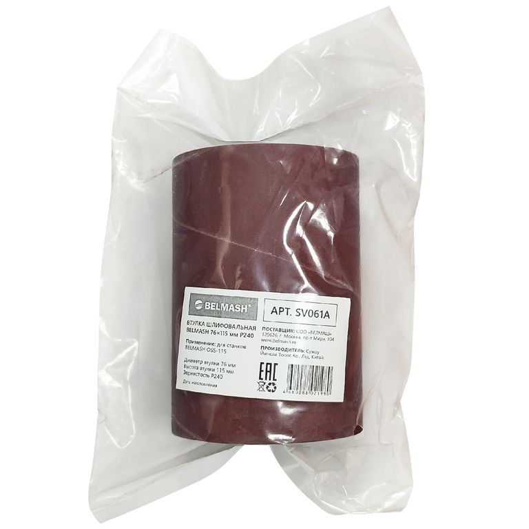 Втулка шлифовальная BELMASH 76*115 мм P240 имеет диаметр 76 мм, с зернистостью абразива (электрокорунд нормальный) 240 грит. Применяется на осцилляционно-шпиндельном шлифовальном станке BELMASH OSS-115.