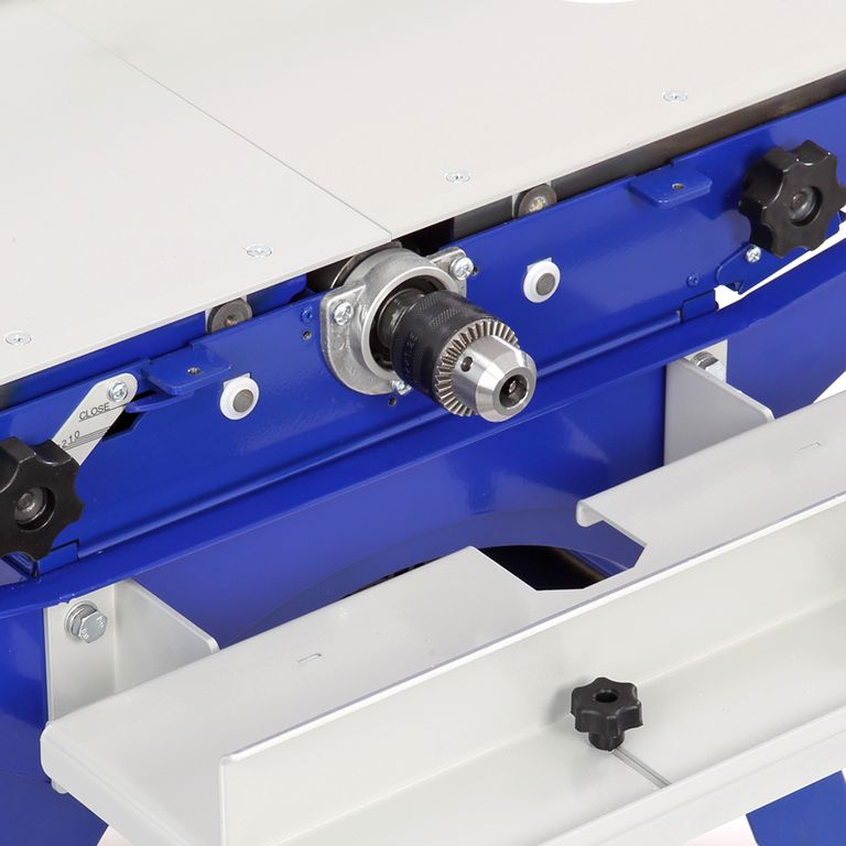В комплектации имеется сверлильный патрон и отдельный фрезерный столик с упором. Накрутив патрон на конец ножевого вала, можно установить концевую фрезу или сверло (диаметр хвостовика до 13 мм).