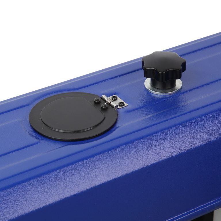 Основание станка чугунное. Оно в данной модели является и рабочим столом, габаритные размеры - 310×490 мм, рабочая поверхность - 237×240 мм. На нем предусмотрены два Т-образных паза для установки тисков или других зажимных приспособлений (в комплект поставки не входят).