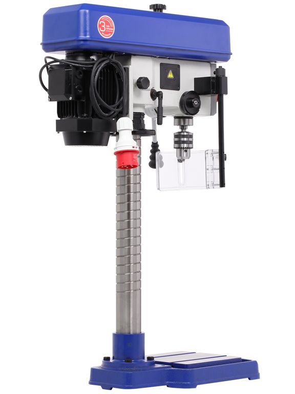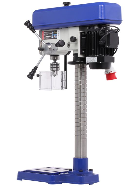 Питание осуществляется от трехфазной сети переменного тока напряжением 400 В (тип вилки - TH-015T). Электродвигатель асинхронный мощностью 550 Вт, режим работы S1. Модель компактная, имеет настольную установку. Основание и корпус сверлильной головки изготовлены из чугуна.