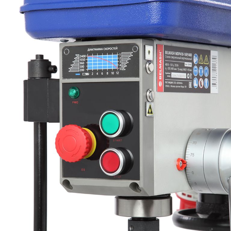 Станок BELMASH MDP410-16P/400 предназначен для обработки различных материалов (мягкие и твердые металлы, древесина) вращающимся режущим или шлифующим инструментом, с целью получения сквозных и глухих отверстий, для чистовой обработки, расточки отверстий, образованных в заготовке каким-либо другим способом.