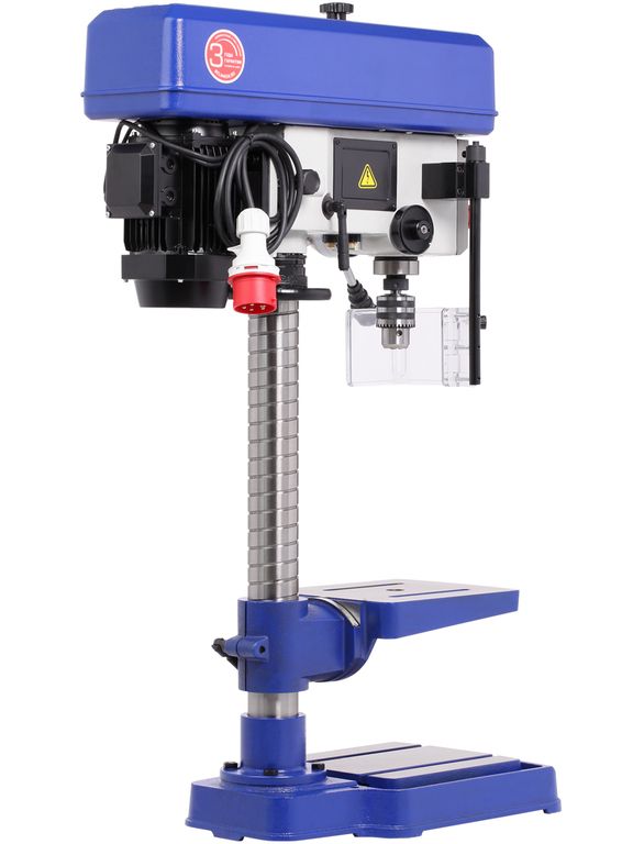 Станок способен сверлить отверстия с максимальным диаметром до 20 мм (в металле) и до 50 мм (в древесине). Патрон ключевой трехкулачковый, с возможностью установки инструмента с хвостовиком до 16 мм. Вращающий момент с вала двигателя на шпиндель передается с помощью клиноременной передачи. Скоростей у данной модели пять: 200, 580, 960, 1550 и 2400 об./мин. Изменить частоту вращения можно переброской ремня на нужную ступень шкивов.
