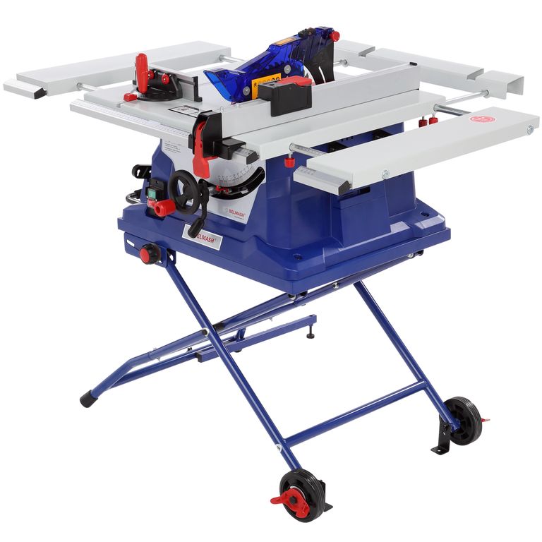Станок имеет мощный однофазный коллекторный двигатель - 1800 Вт (режим S1). В качестве режущего инструмента используются пильные диски с наружным диаметром 255 мм с наклоном от 0 до 45 градусов (влево). Максимальная высота пропила - 80 мм (без наклона диска).