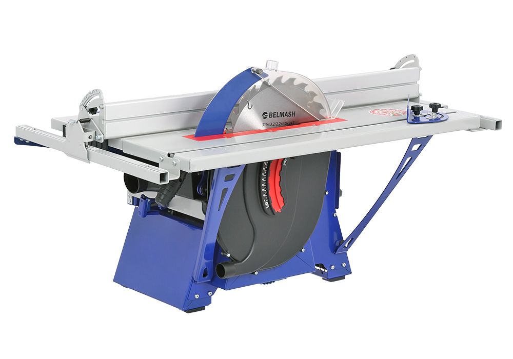 Пильный узел станка рассчитан на установку дисков диаметром 315 мм, что позволяет распускать заготовки до 117 мм высотой. Столы (пильный и строгальные) при этом образуют единую рабочую достаточно большую поверхность. Настройка высоты пропила происходит за счет изменения положения режущего инструмента. Кроме пильных дисков можно устанавливать дисковые фрезы диаметром 125 мм, шириной до 10 мм.