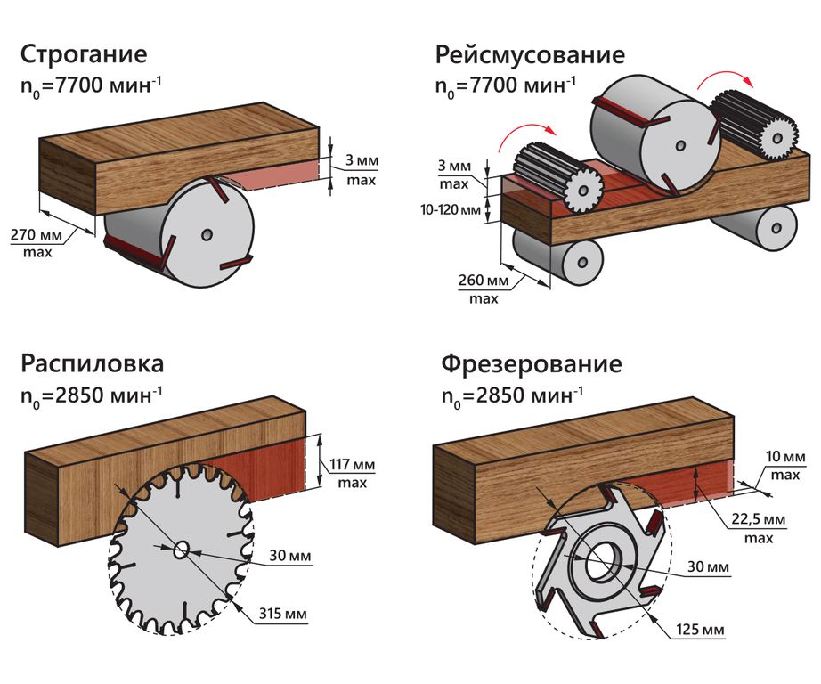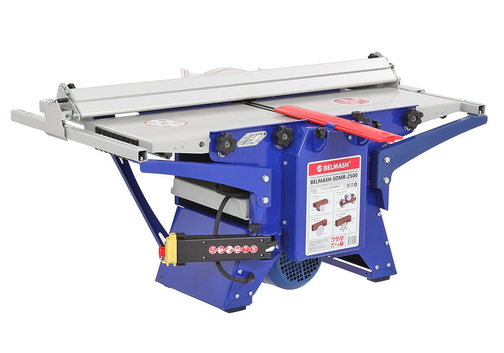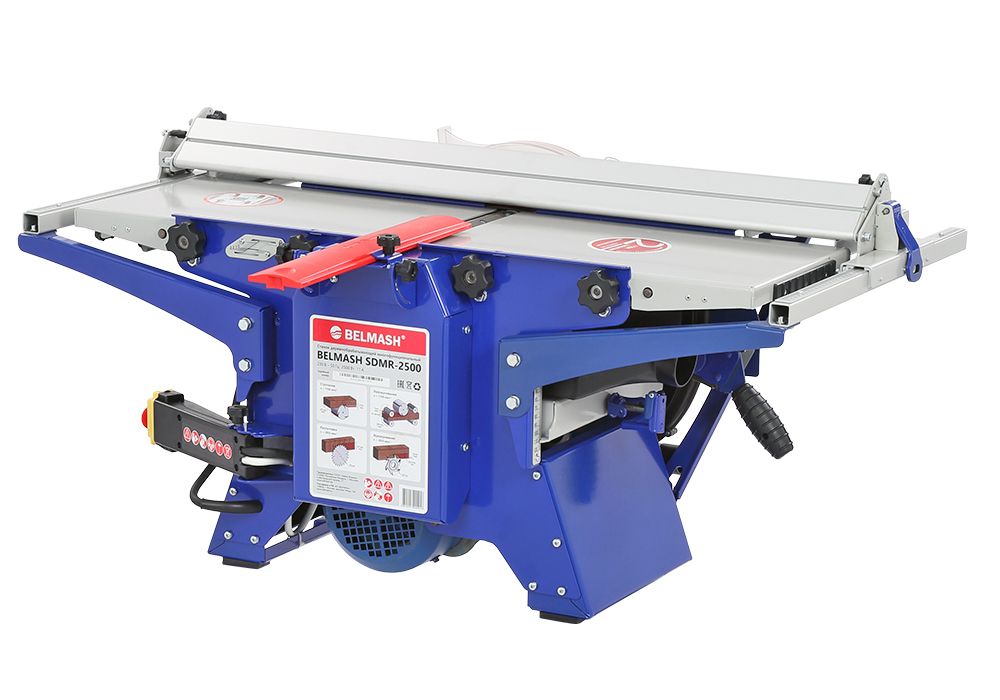 BELMASH SDMR-2500 – один из самых функциональных комбинированных станков «Завода Белмаш». В нем реализованы четыре ключевые функции, которые позволят выполнить базовые операции: распиловку, строгание/фугование, рейсмусование и фрезерование дисковыми фрезами.