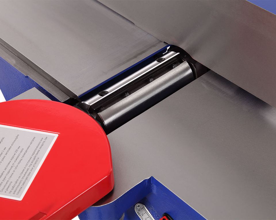 Подающий и приёмный столы перемещаются по направляющим «ласточкин хвост», что обеспечивает надежность и долгий срок службы. Для удобной настройки подающего стола на рукоятке регулировки глубины строгания добавлена скоба быстрой фиксации. Максимальная глубина регулировки подающего стола 13 мм (для операции отбора четверти).