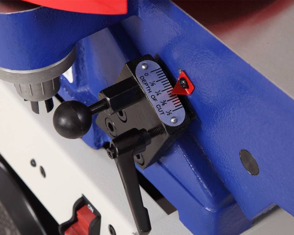 Максимальная ширина обработки составляет 152 мм, общая длина строгальных столов 1190 мм. Глубина строгания до 3 мм, для точной регулировки на станке размещена шкала с указателем.