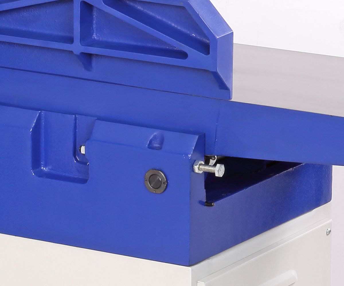 Подающий и приёмный столы перемещаются по направляющим «Параллелограмм». Это более удобный, надежный точный механизм перемещения и фиксации столов. Максимальная глубина регулировки подающего стола 19 мм.