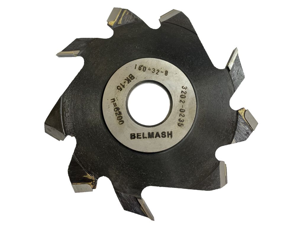 Фреза пазовая с подрезающими зубьями, BELMASH 160х32х8 мм применяется для выработки прямоугольных пазов, выборке четвертей и фрезеровании вдоль волокон в заготовках из древесины различных пород.