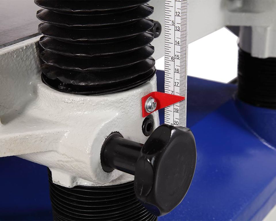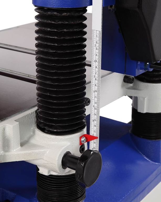 Два ролика прецизионного рабочего стола облегчают перемещение заготовки при подаче через станок. Регулировка высоты роликов зависит от типа обрабатываемого дерева. Диапазон настройки высоты находится в пределах от 0 до 1,5 мм. Также установлено два прокатных ролика сверху станка. В качестве режущего инструмента используется строгальный вал helical.