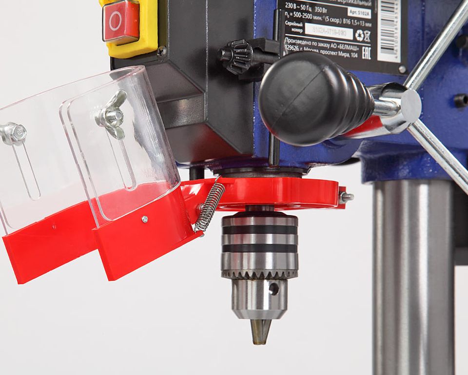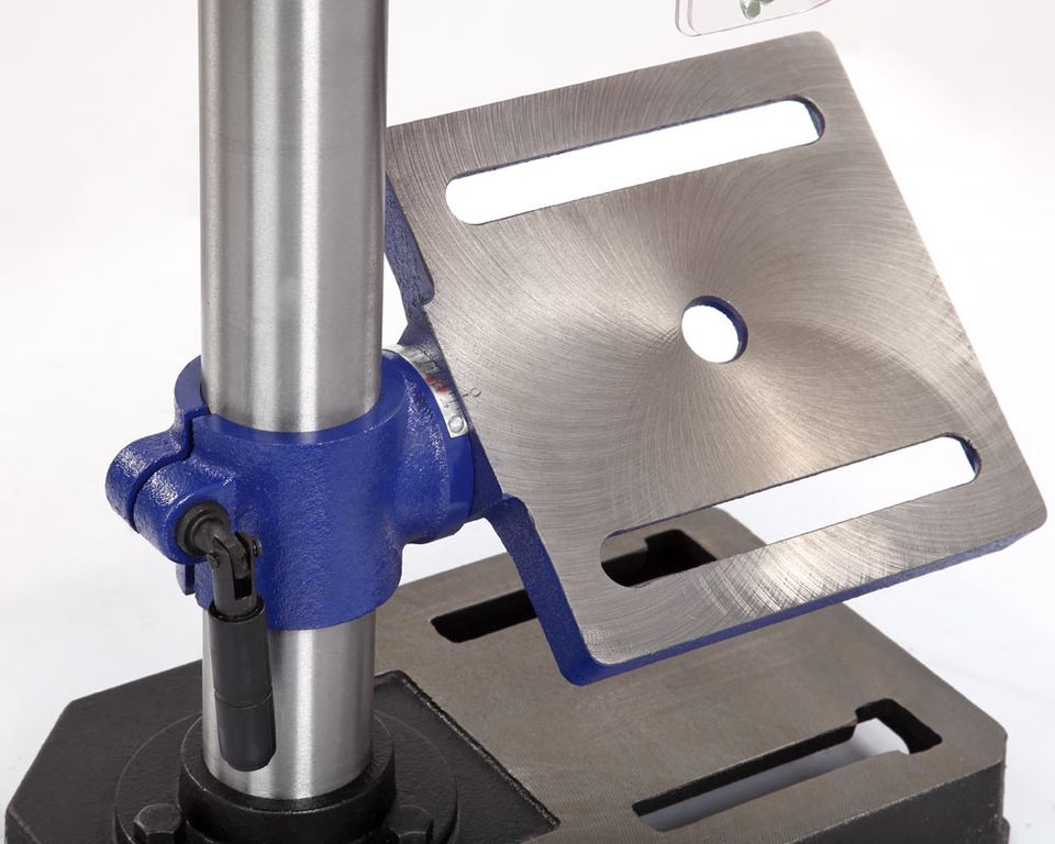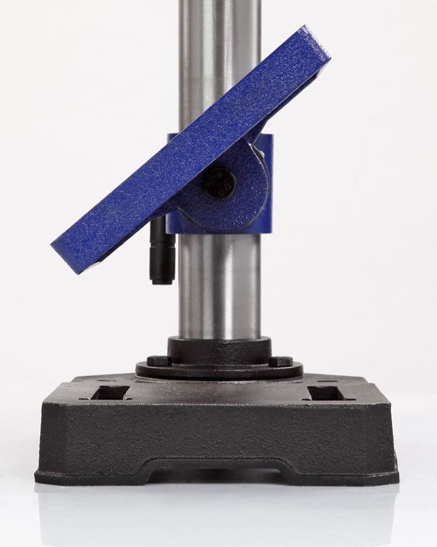 Патрон ключевой с максимальным зажимаемым диаметром хвостовика инструмента 13 мм. Диаметр стойки (колонны) 48 мм. На ней фиксируется стол с помощью зажима.