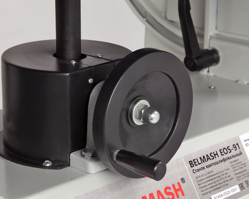 Конструктивно он представляет собой шлифовальный блок с приводом и двумя рабочими столами, размещенными на основании. У ленточного блока предусмотрена регулировка угла наклона от 0 до 90 градусов. Рассчитан на подключение к сети 400 В. Имеется аналогичная модель BELMASH EOS-91 для подключения к электросети 230 В.