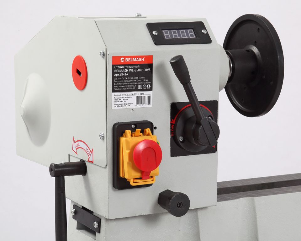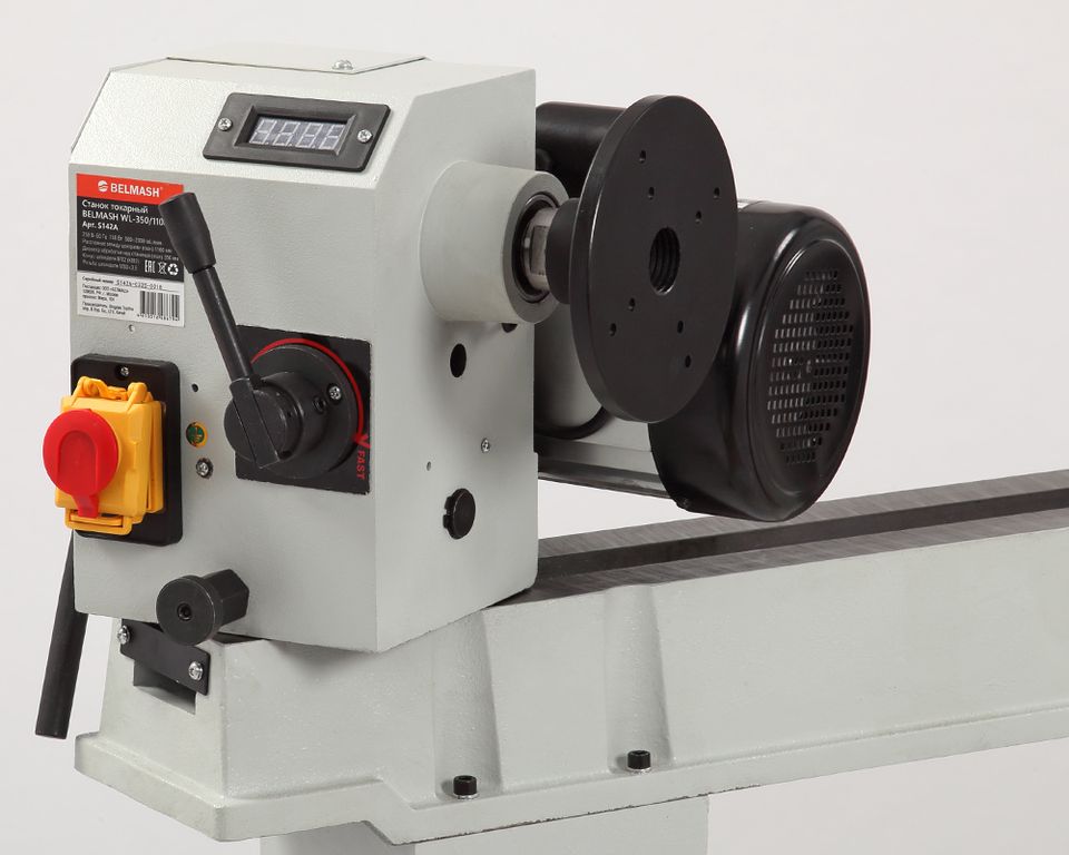 Заготовка получает вращение от шпинделя, скорость регулируется с помощью вариатора в диапазоне от 500 до 2000 об/мин.