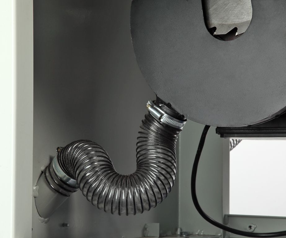 - Продуманная система аспирации - патрубки отвода стружки подходят к зонам реза: предохранительному кожуху пильного диска и кожуху пильного узла