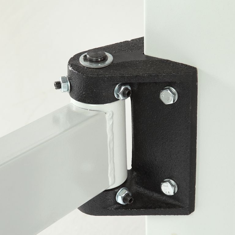 Конструкция подвижного стола рассчитана на нагрузки. Кронштейн изготовлен из толстостенного стального профиля. Шарнирный механизм выполнен с использованием шариковых подшипников.