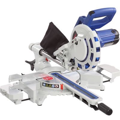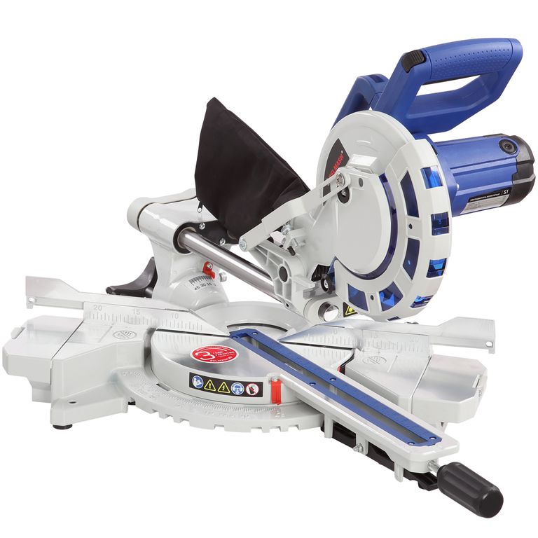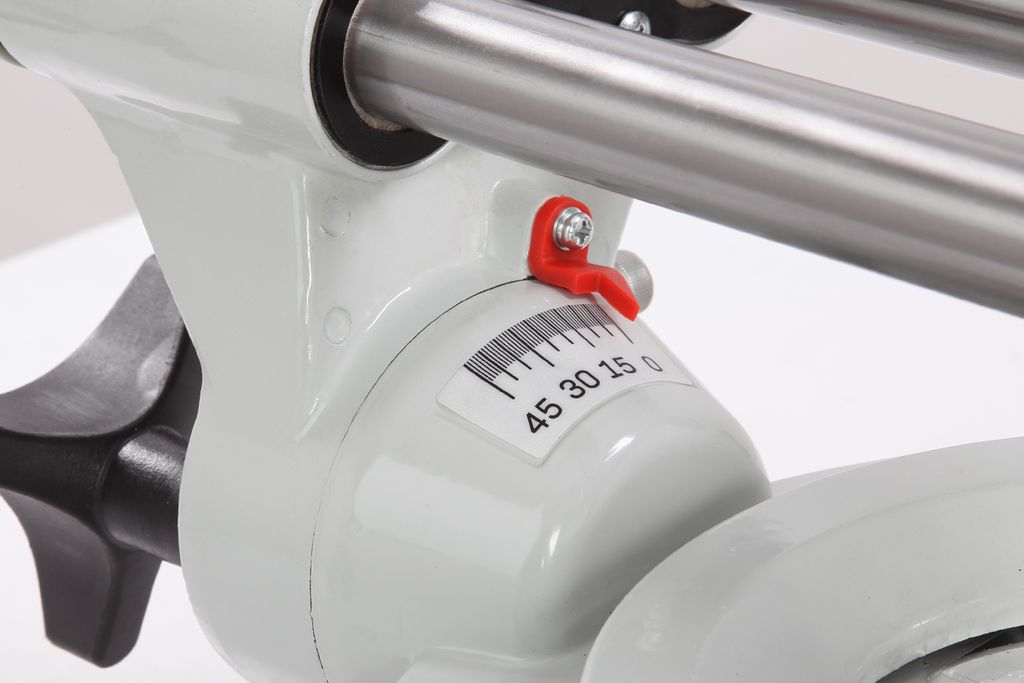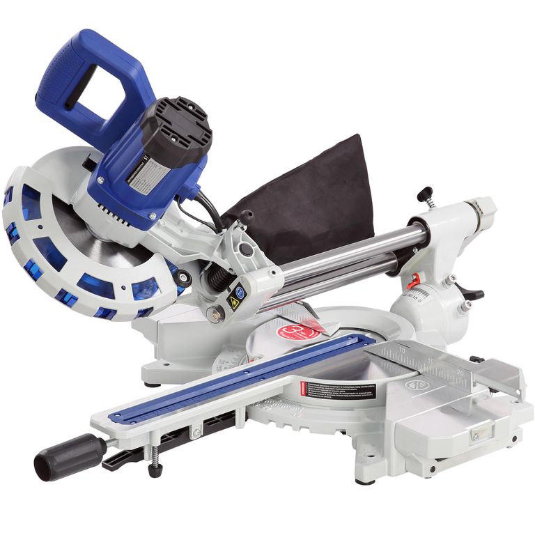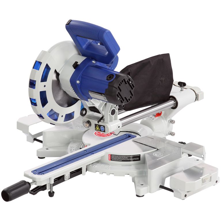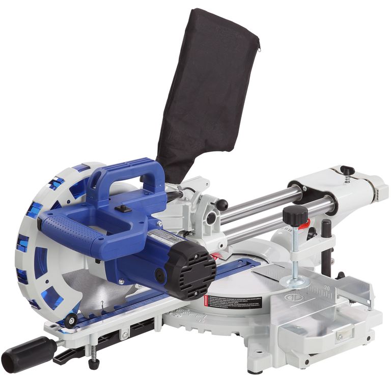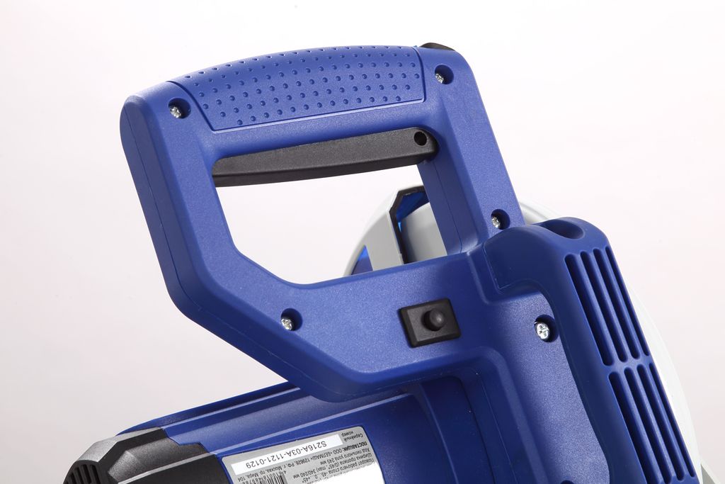 Для дополнительной точности реза предусмотрена лазерная направляющая. В комплекте есть струбцина для фиксации заготовки. Режущая головка с автоматически закрывающимся защитным кожухом. Патрубок для отвода отходов резания позволяет подключить вытяжное устройство.