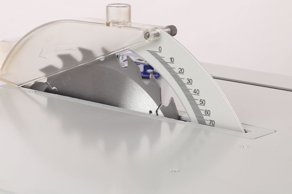 Направляющие упора снабжены регулируемыми шкалами ширины пиления. Для точного позиционирования также есть шкала глубины пиления (на расклинивающем ноже) и шкалы угла наклона (пильного диска и параллельного упора).