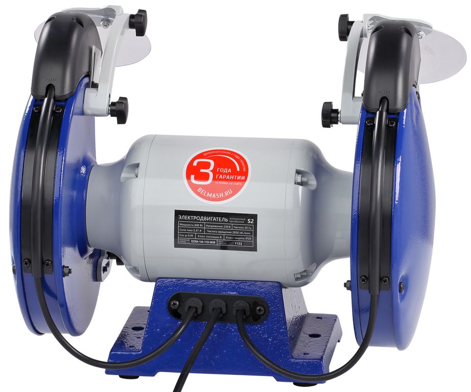 Заточной станок BELMASH MBG-200M предназначен для затачивания режущих инструментов при помощи вертикально вращающихся заточных дисков.