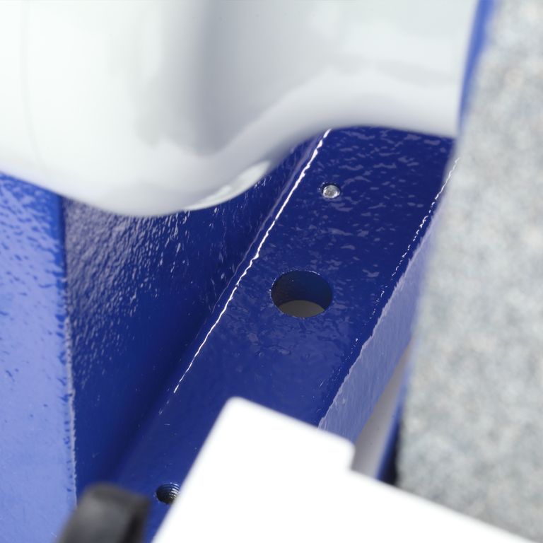 Чугунное основание станка снижает вибрацию. Имеются два отверстия для крепления к верстаку.