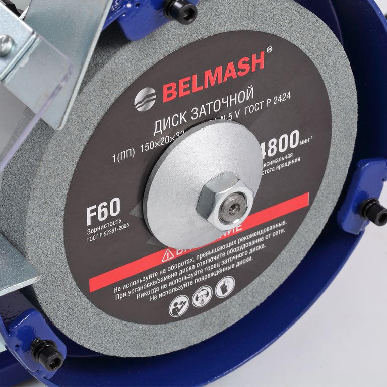 Станок BELMASH MBG-150P предназначен для затачивания режущих инструментов при помощи вертикально вращающихся заточных дисков.