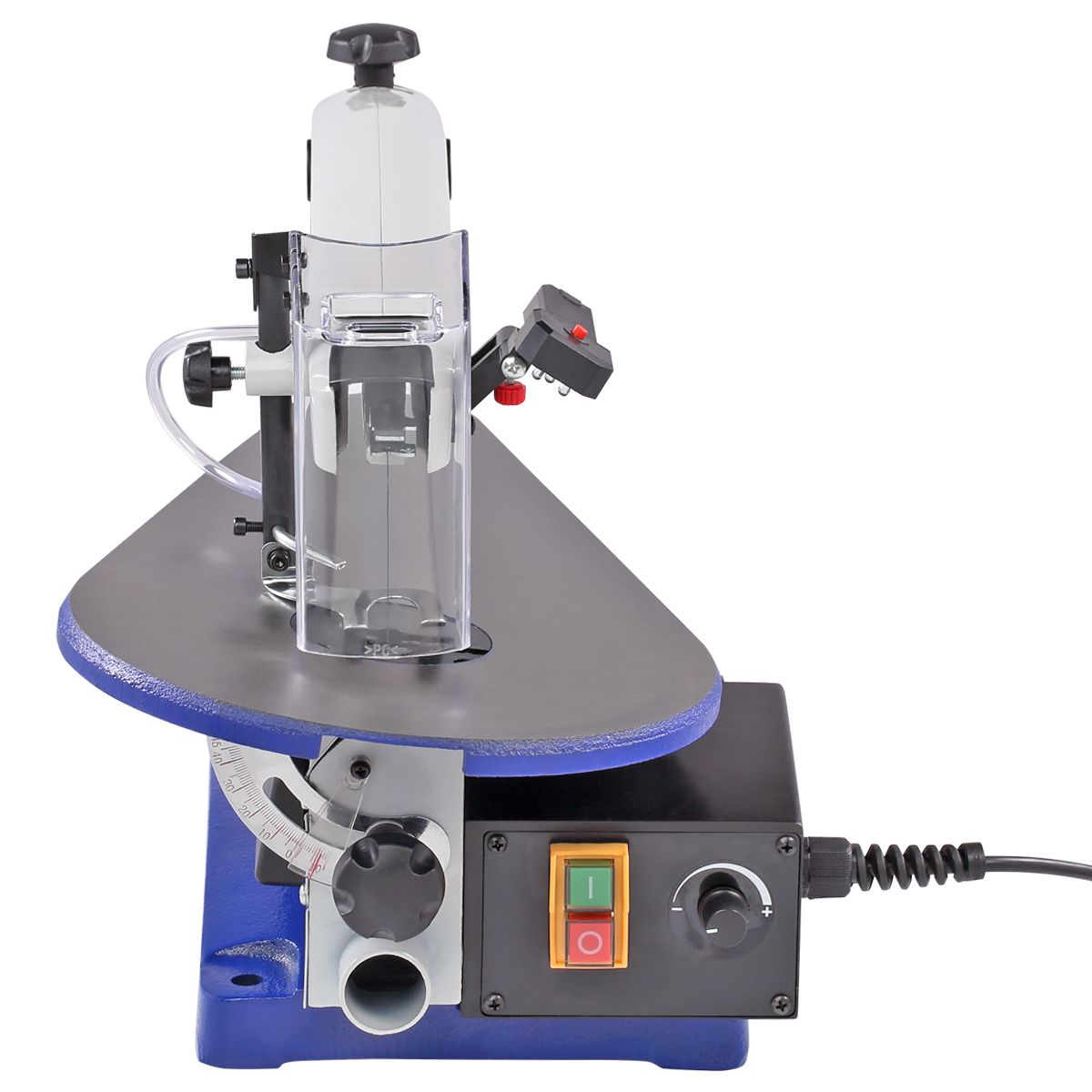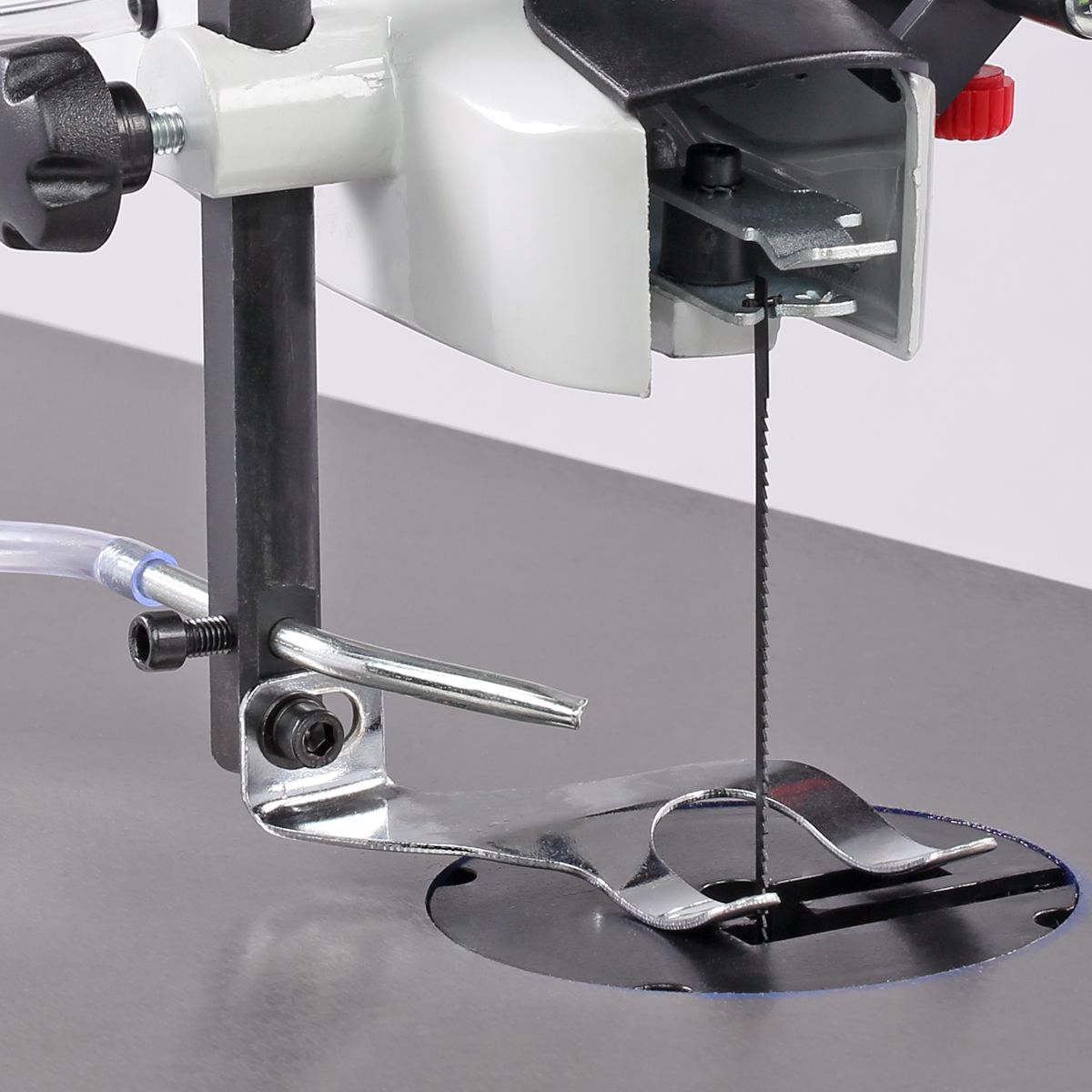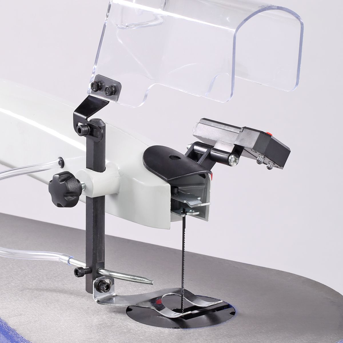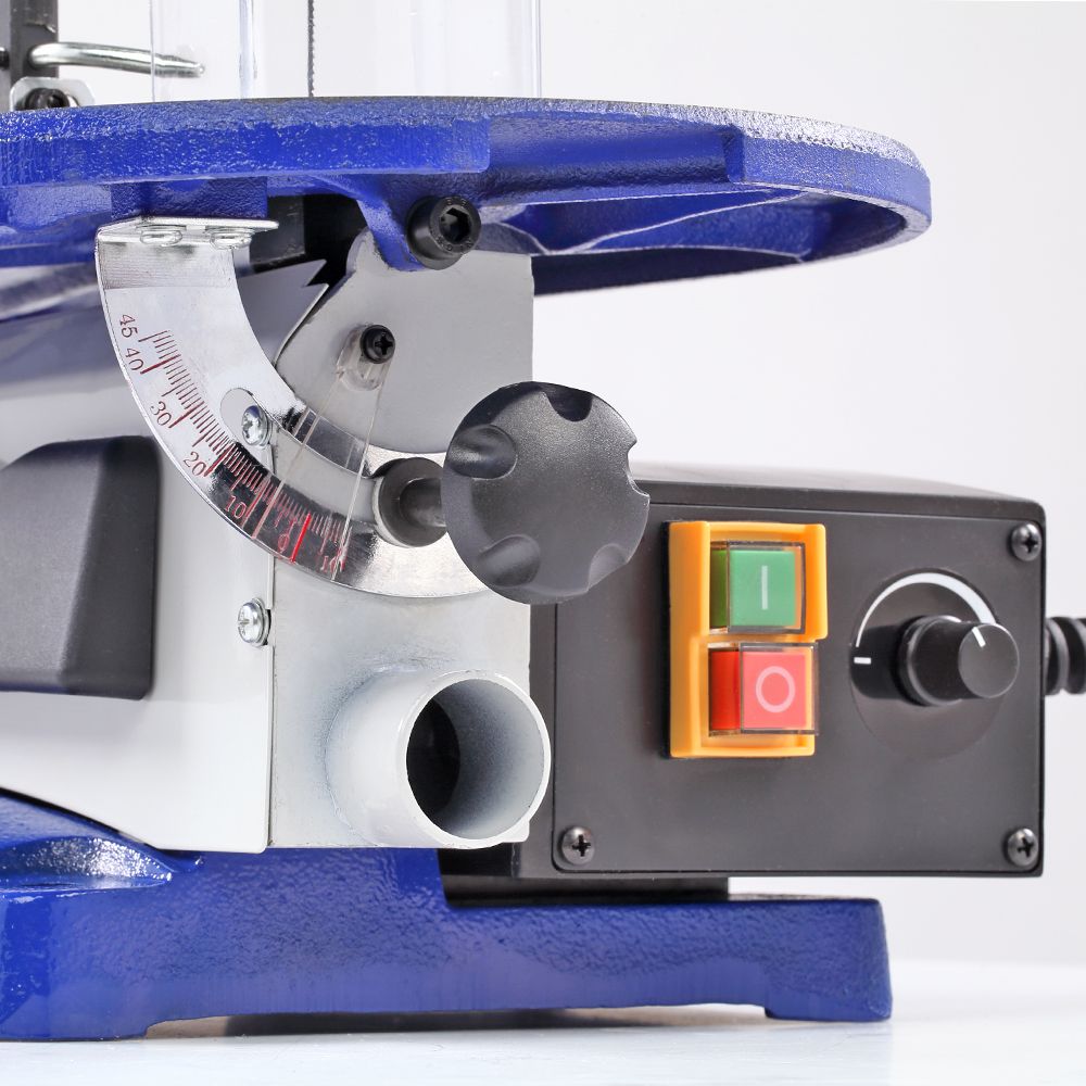 Для удобства оператора станок оснащен LED-подсветкой.В основании станка есть специальные отверстия для крепления к верстаку, что придает устойчивость и дополнительную безопасность.
