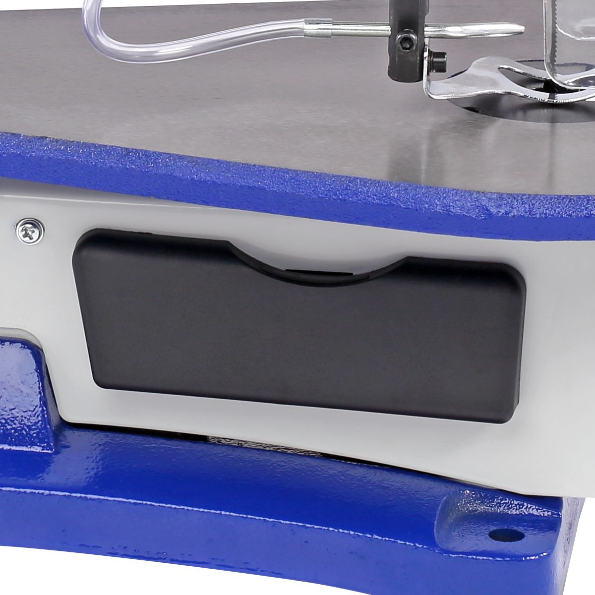 Приятные мелочи: на корпусе расположен отсек для хранения инструмента и пилок.Сравнительно небольшие размер и вес модели позволяют использовать ее даже в маленькой мастерской.
