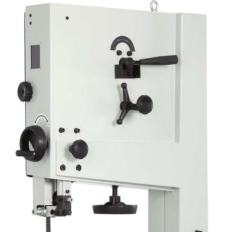 На станке используются пильные полотна длиной 3345 мм и шириной от 9,5 до 37 мм, что позволяет осуществлять как прямолинейный, так и фигурный распил. Ослабление натяжения полотна осуществляется специальным рычагом в одно движение. На правой части рамы, сверху и снизу расположены смотровые окна для отслеживания расположения пильного полотна на шкивах. Шкивы (маховики) выполнены из чугуна, диаметр 420 мм.