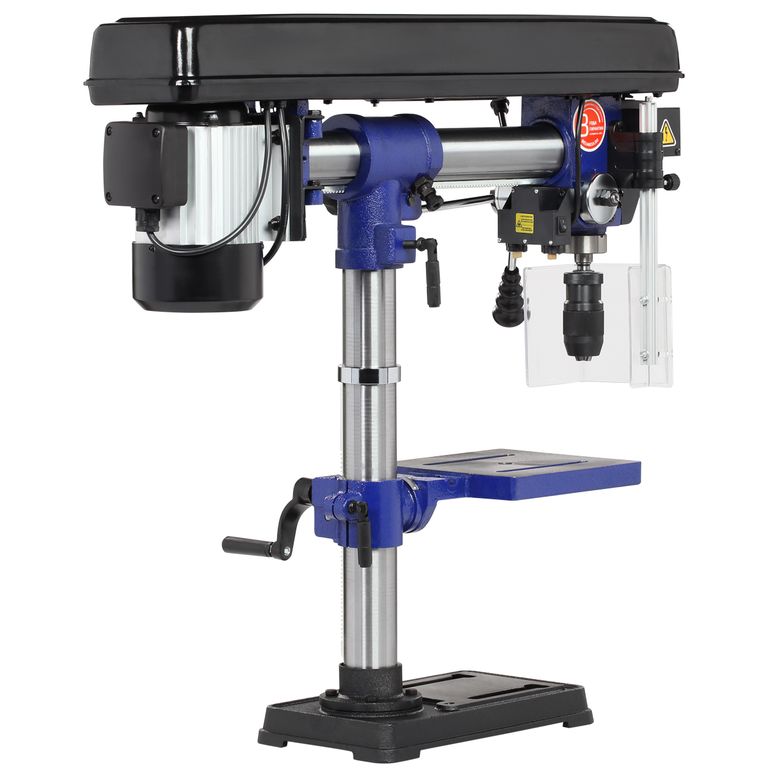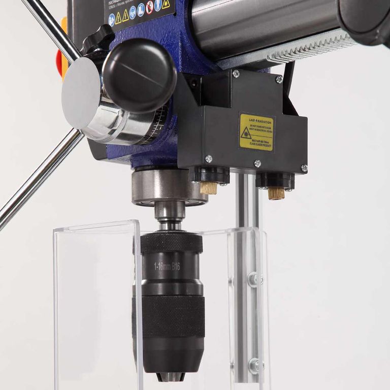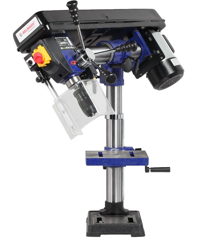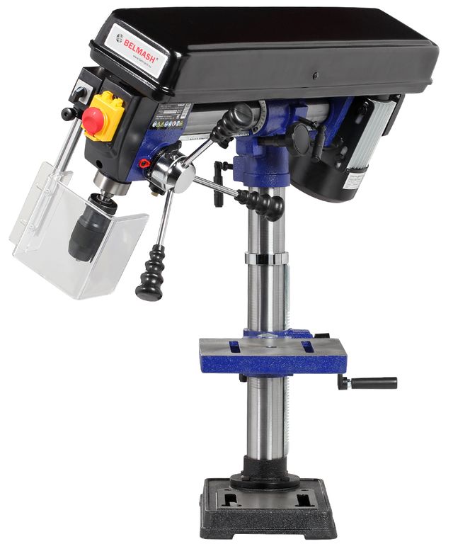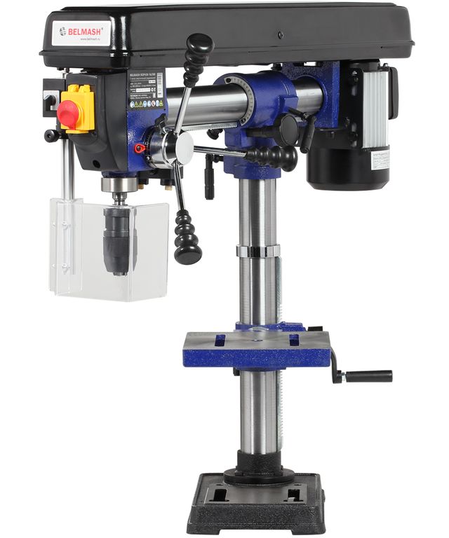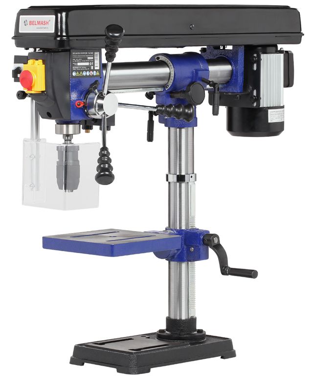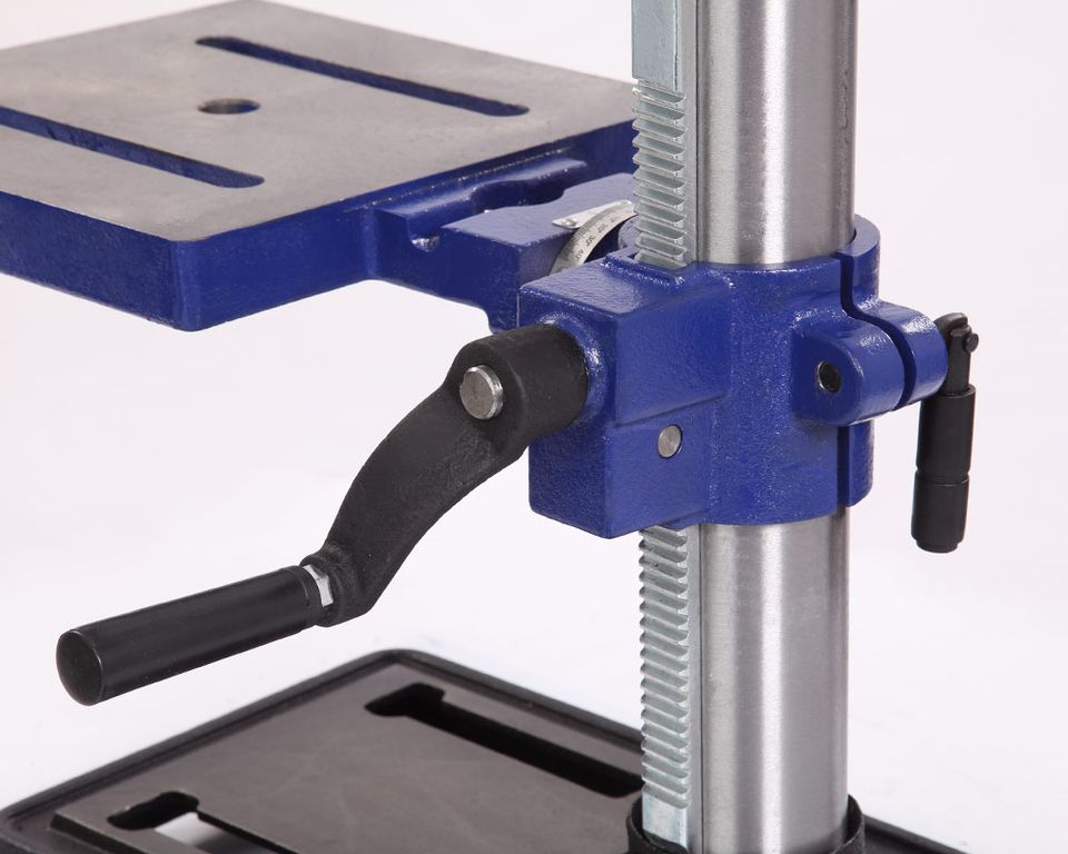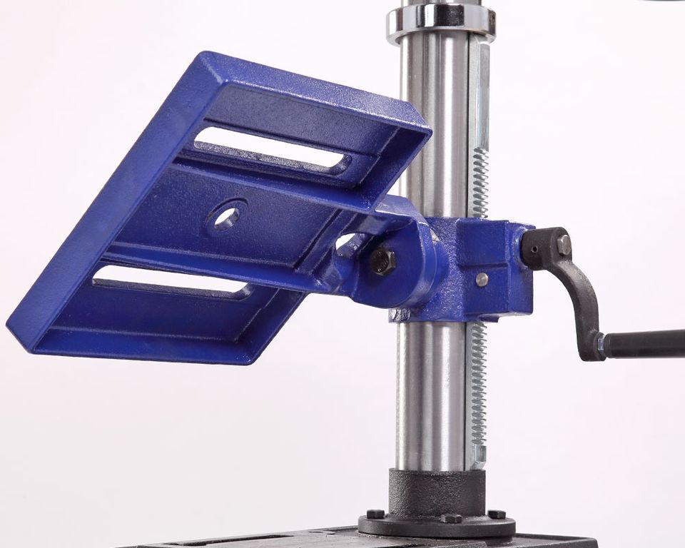 Патрон быстрозажимной с максимальным диаметром зажимаемого хвостовика инструмента 16 мм. Диаметр стойки (колонны) 60 мм, на ней имеется зубчатая рейка, поднятие/опускание стола настраивается с помощью рукоятки.
