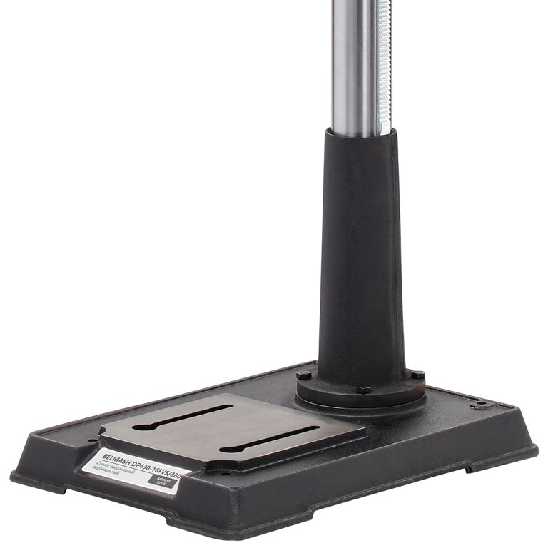 Модель DP430-16FVS одна из самых интересных в линейке по функционалу. Стол, опора и корпус сверлильной головки выполнены из чугуна, что придает станку серьезный вес. Установка напольная. На основании имеется четыре отверстия для дополнительной фиксации станка.