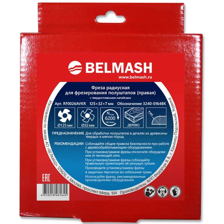 Фреза радиусная BELMASH 125×32×7 мм, правая, необходима для проработки полуштапов в деталях из древесины твердых и мягких пород. Одновременно с ней вы можете приобрести парную левую BELMASH 125×32×7 мм.