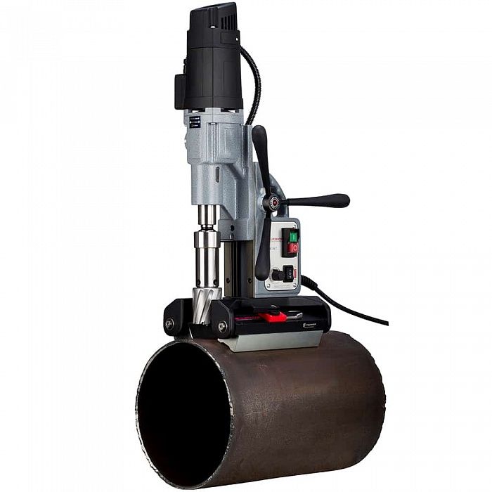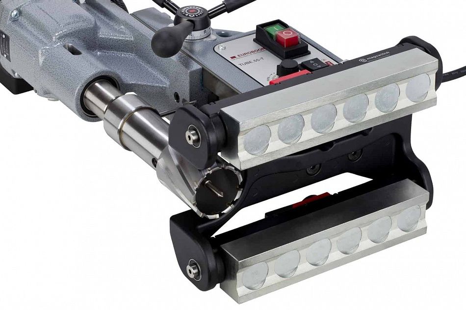 Сверлильный станок для сверления на изогнутых поверхностях Euroboor ECO.TUBE-55S/T идеально подходит для нарезания резьбы и сверления сверления отверстий в трубах. Магнитное основание обеспечивает сцепление даже со сталью толщиной 3 мм. Магнит не требует электричества, что обеспечивает максимальную безопасность. ECO.TUBE-55S/T оснащён цифровым дисплеем с информацией о потребляемой мощности и индикатором перегрузки, технологиями Smart Restart и GYRO-TEC.