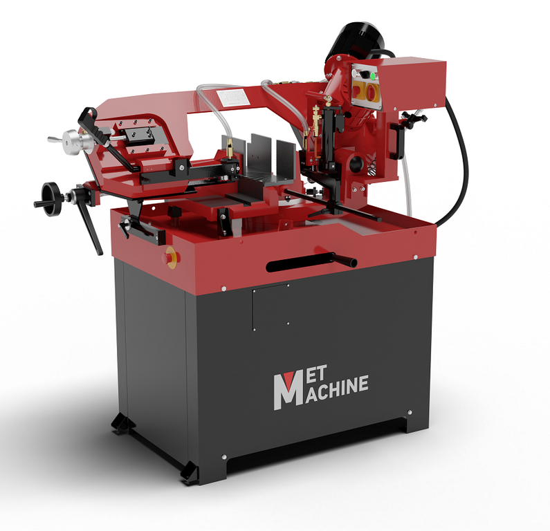 Ручной ленточнопильный станок MetMachine LSZ1525 маятникового типа с поворотной пильной рамой оснащен асинхронным двигателем и требует подключения питания на 380В. Обрабатывает металлические заготовки под углом 45°, 60°, 90°. Максимальный диаметр круглых заготовок до 250 мм, максимальный размер квадратного сечения до 250х250 мм (значения актуальны при угле распила 90°). С уменьшением угла уменьшается и максимальный диаметр/размер сечения заготовки. Резка происходит в полуавтоматическом режиме. Возврат пильной рамы в первоначальное положение осуществляется вручную с помощью гидроцилиндра. В зону распила подается полотно высотой 27 мм и толщиной 0,9 мм. На надежной пильной консоли установлены привод главного движения, направляющие ленточнопильного полотна, датчики автоматики, форсунки системы охлаждения, щетка для удаления стружки, система подачи СОЖ, пульт управления. Комплектация: станок, колеса, ось, трубка для заправки СОЖ, упор