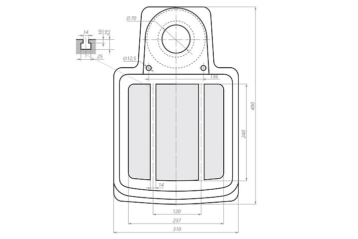 Станок имеет устойчивое чугунное основание размером 490 x 310мм, с рабочей поверхностью стола 238 х 240мм, на которой предусмотрены 2-Т образных паза с шириной 14мм, для установки тисков или других зажимных приспособлениями. Расстояние между пазами 120мм. На основание установлена колонна диаметром 70мм с винтовой канавкой для возможности перемещения сверлильной головы по вертикали. Максимальное расстояние между шпинделем и столом-основанием, составляет 540мм.