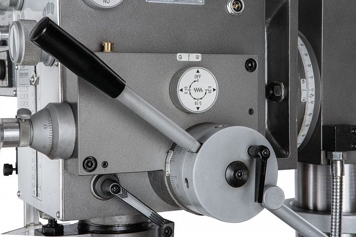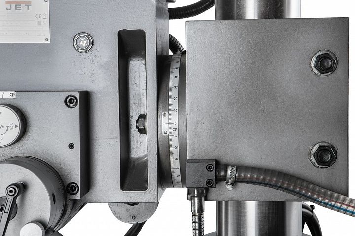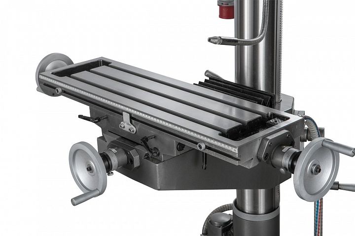 Редукторный вертикально-сверлильный станок JMD-40PFCT с крестовым столом с максимальным диаметром сверления по стали 32мм и до 40мм по чугуну, предназначен для работы в ремонтных и инструментальных цехах, а также в производственных цехах с мелкосерийным и серийном выпуском продукции; оснащенный приспособлениями станок может быть применен в крупносерийном и массовом производстве.