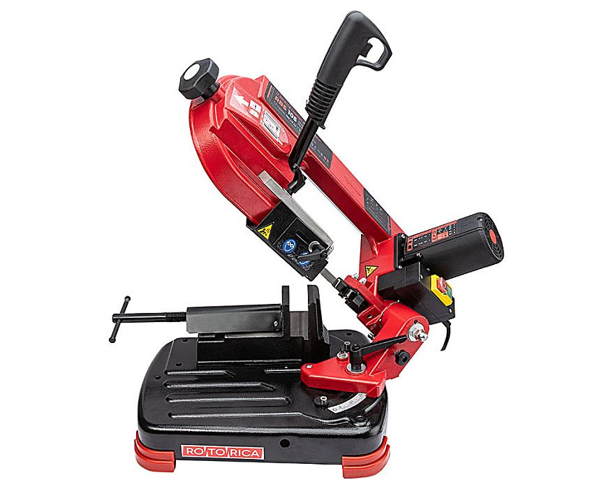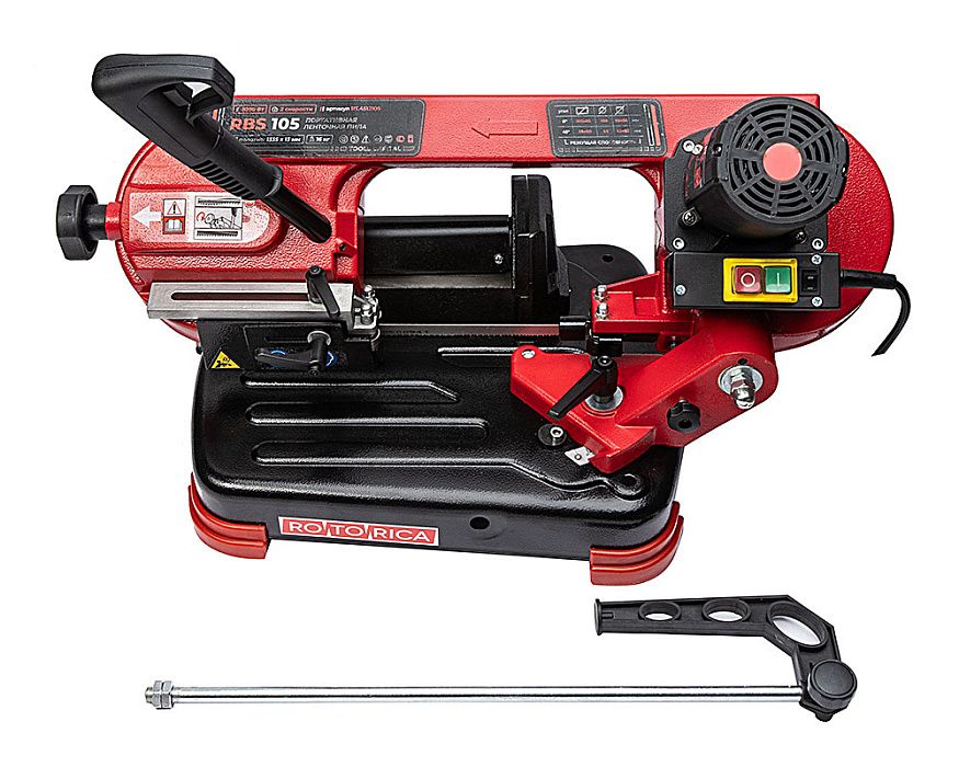 Портативная двухскоростная ленточная пила на станине Rotorica RBS 105 предназначена для резания профильных и полых металлических заготовок, как под прямым углом, так и с возможностью регулировки угла до 450. Все настройки и управление пилой осуществляются пользователем. Скорость движения полотна 60 или 80 м/мин устанавливается клавишей.